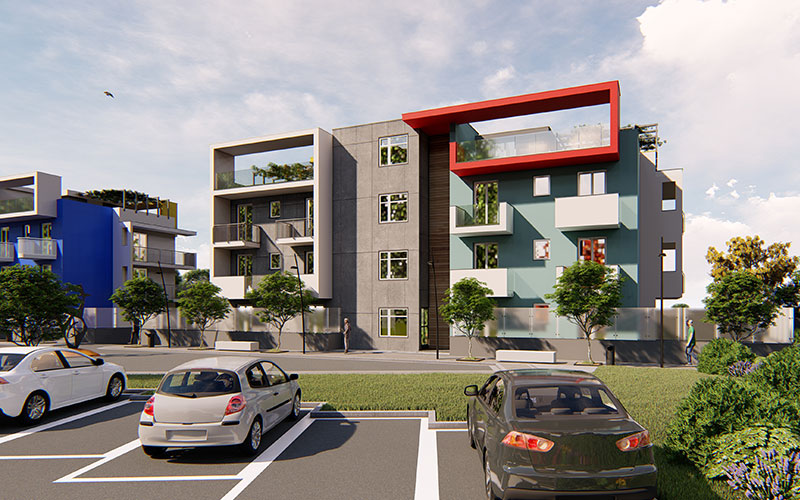 L’insediamento residenziale in oggetto si organizza secondo un modello articolato in due diverse unità immobiliari gravanti su due apprezzamenti di terreno contigui con lo scopo di diventare un luogo che possa stabilire un dialogo equilibrato tra paesaggio, comfort abitativo e al tempo stesso esperienza di condivisione sociale. Complessivamente consta di 31 appartamenti, disposti in linea con metrature pressoché simili e distribuiti in cinque immobili distinti, progettati in modo da non apparire uguali.