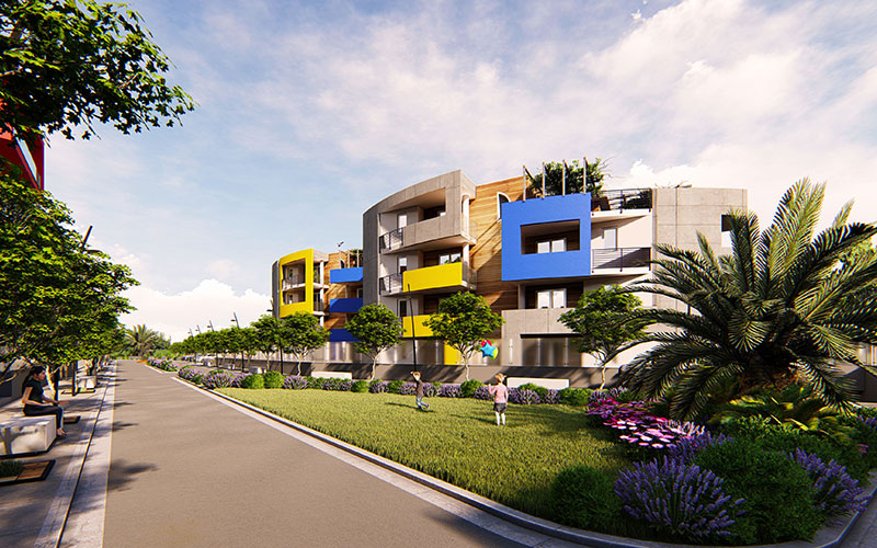 L’architettura naturalistica, rappresenta il cuore ed il connettivo principale dell’intervento con spazi comuni, aree gioco, di passaggio, di sosta e di incontro; elementi che nella loro linearità e geometria rispecchiano le tendenze paesaggistiche di oggi. Gli altri edifici più bassi rispondono a concezioni progettuali diverse, attraverso l’unione di fattori contrapposti : classico e moderno con l’obiettivo e la volontà di cercare e creare un ordine, una modulazione che possa contribuire a rendere le forme architettoniche coerenti e parti di una stessa unità.
